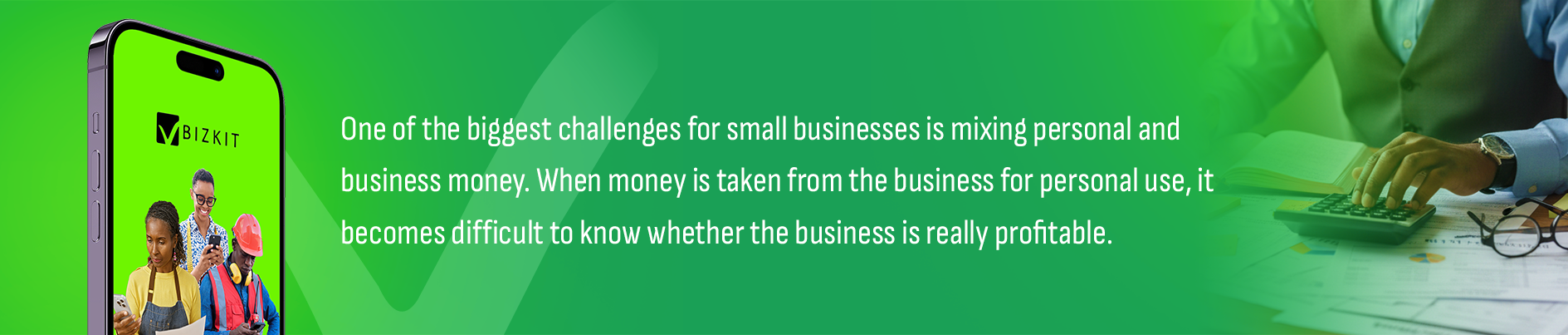 One of the biggest challenges for small businesses is mixing personal and business money. When money is taken from the business for personal use, it becomes difficult to know whether the business is really profitable.